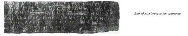 В Витебске была найдена единственная пока на территории Белоруссии берестяная грамота . Обнаружена она случайно при земляных работах на площади Свободы в 1959 г. на глубине около 3.4 м. Грамота содержит полный текст письма из шести строк, написанного буквами, характерными по начертанию для рубежа XIII и XIV вв. Вот ее содержание: «От Степана къ Нежилови. Ожееси продалъ порты, а купи ми жита за 6 гривенъ. А ли цего еси не продалъ, а поели ми лицемъ. А ли еси продалъ, а добро сътворя у купи ми жита».